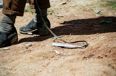 Carried by rural Tibetans to warn off dogs, (or if needed, use against them as a weapon). Swung around as a sort of marshall art. Kids carry light ones to practice with, adults have heavy ones. This is a child’s version.