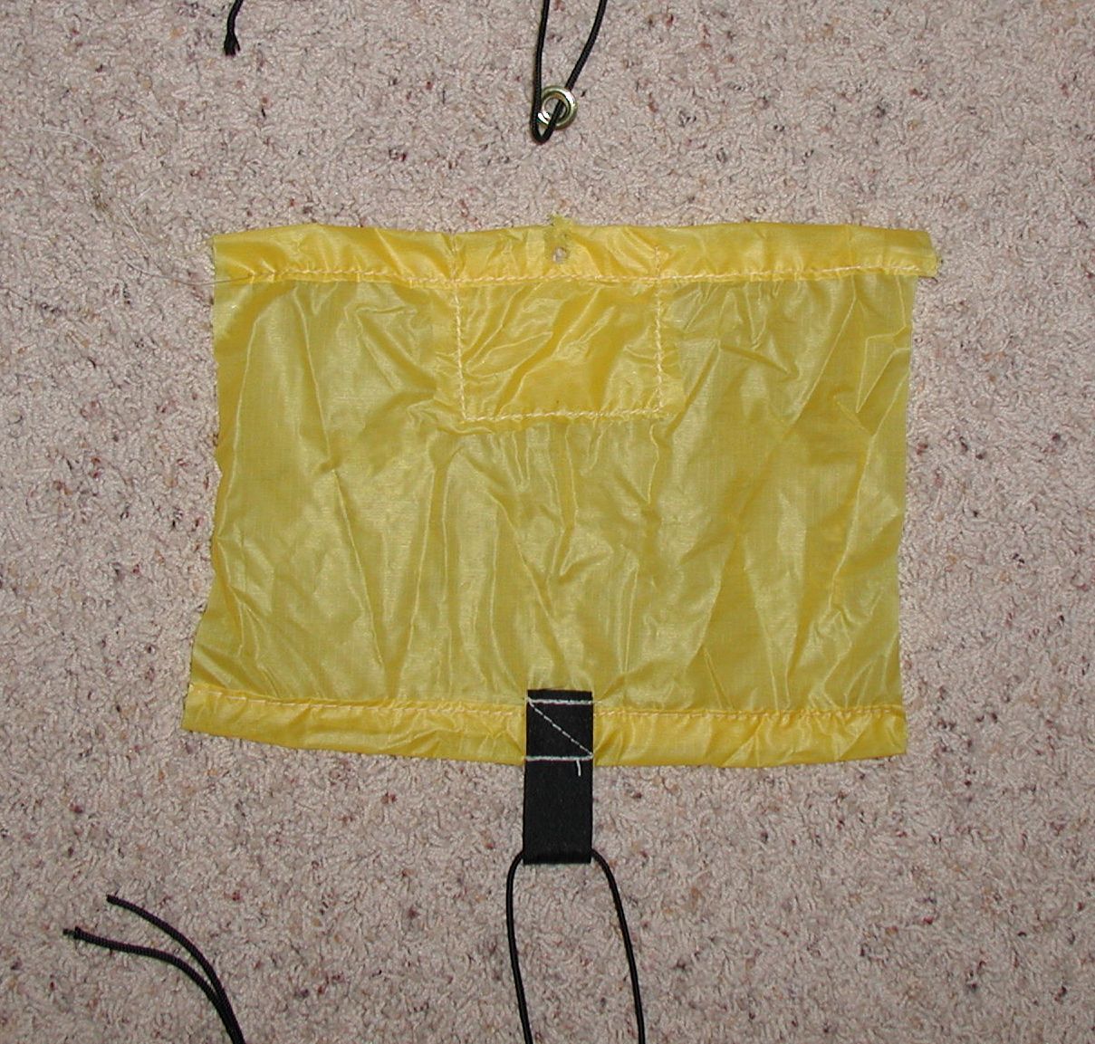 grommet in 4 layers of 30d silnylon, fabric stretched and grommet pulled out before 1" webbing stitched on failed.