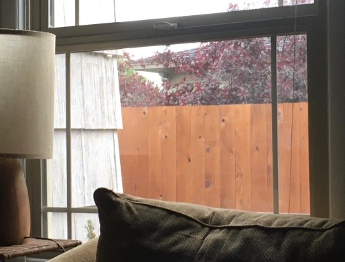 Other pictures are of another of the neighbor’s camera’s seen looking out from our couch.  Amazing this isn’t against the law. Also amazing is the creepiness of the neighbor. Time for another screen since he placed the camera above our new fence.
