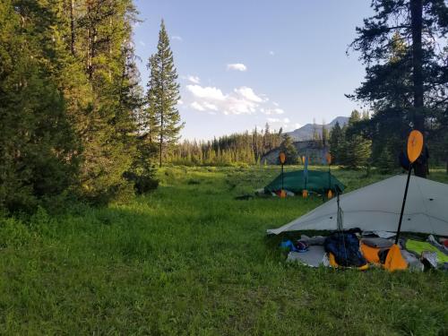 - 4 to 12 stakes (4 minimum with trees for ridgeline tie outs, more stakes needed if windy, snow load or using poles for support)