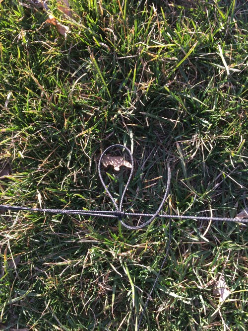 Stake out the four corners at a height that maintains about 4″ of netting laying on the ground.