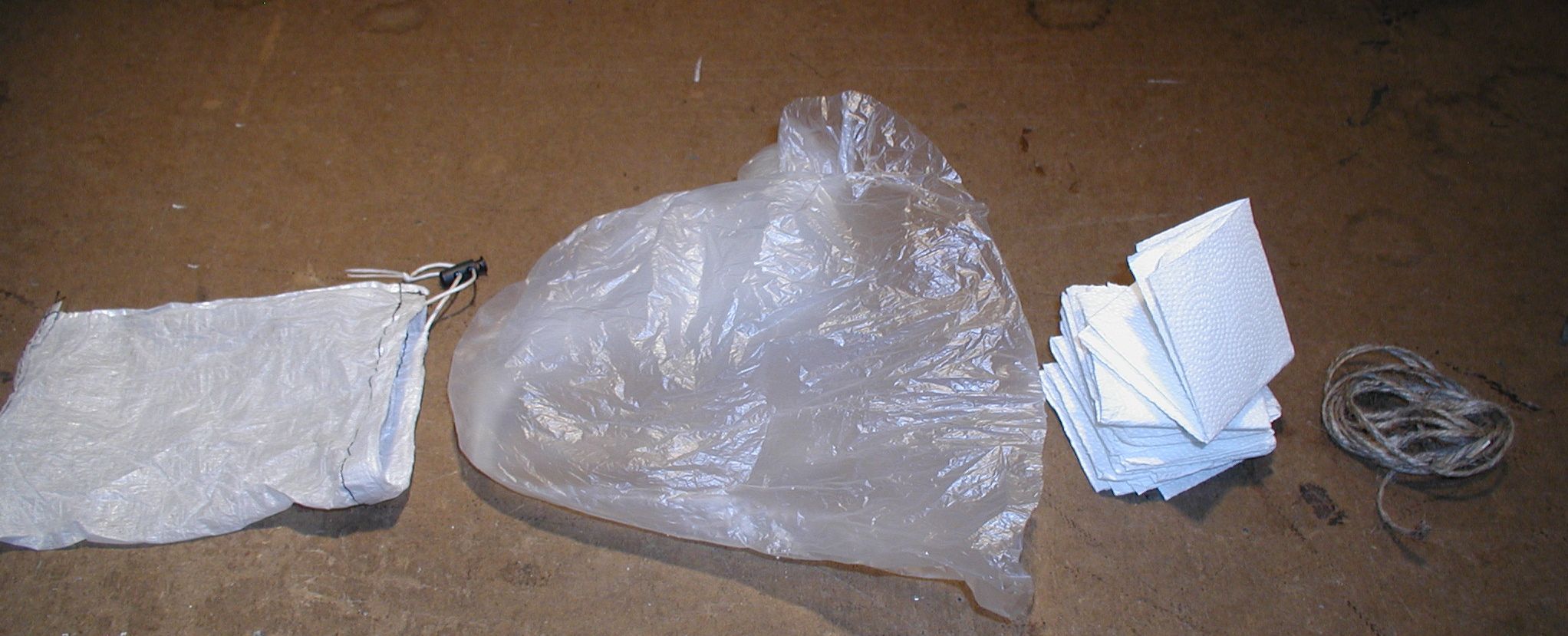 I cut a 6″ section of the jute cord and fuzz it up and use it to catch a spark from a mish metal flint which then catches the paper towel and with care will burn the whole thing to ash.