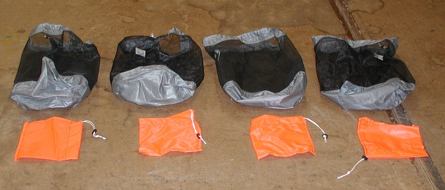 Note the bright orange throw sacks for holding a rock when setting up, and the cord when not in use. Orange is easier to find if you have a bad throw.