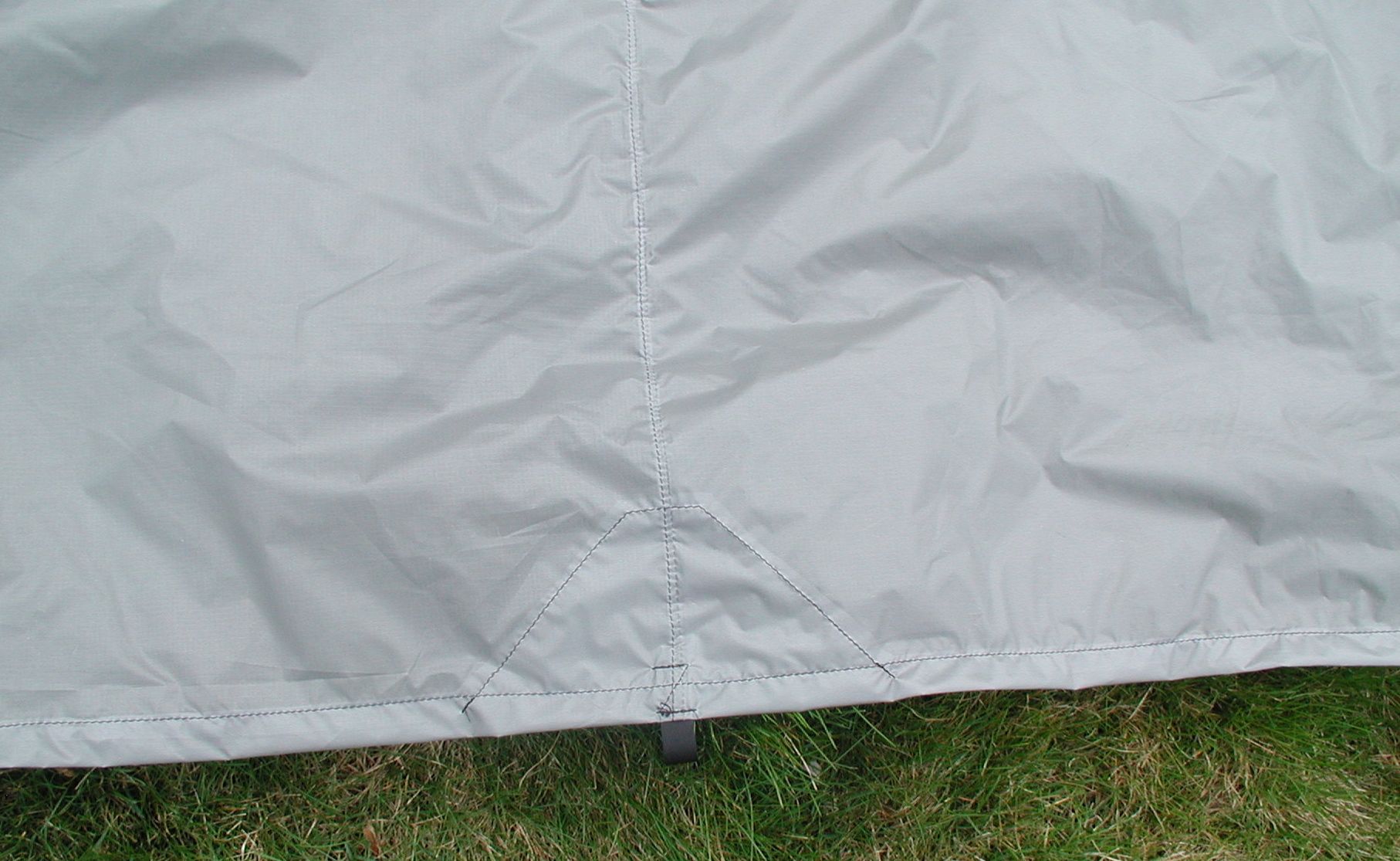 Flat tarp 7×9 finished size. A solo tarp shelter for 1 person. 12 reinforced web tie outs around hem, and 1 tie out centered in ridgeline. Price includes shipping in the USA, and a stuff sack. 30 Denier Silnylon with stuffsack weighs 12.4 oz. Free shipping in the USA. Works great with a bivy sack for all weather protection. Notes- fabric is NOT flame retardant, keep away from heat and flame.