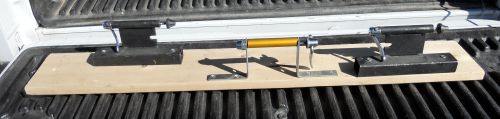 extra hub quick release with two angle braces and a piece of tubing for a spacer or commercial attachments. Having them screwed to a board which is loose in the truck bed, makes it easy to put the bikes