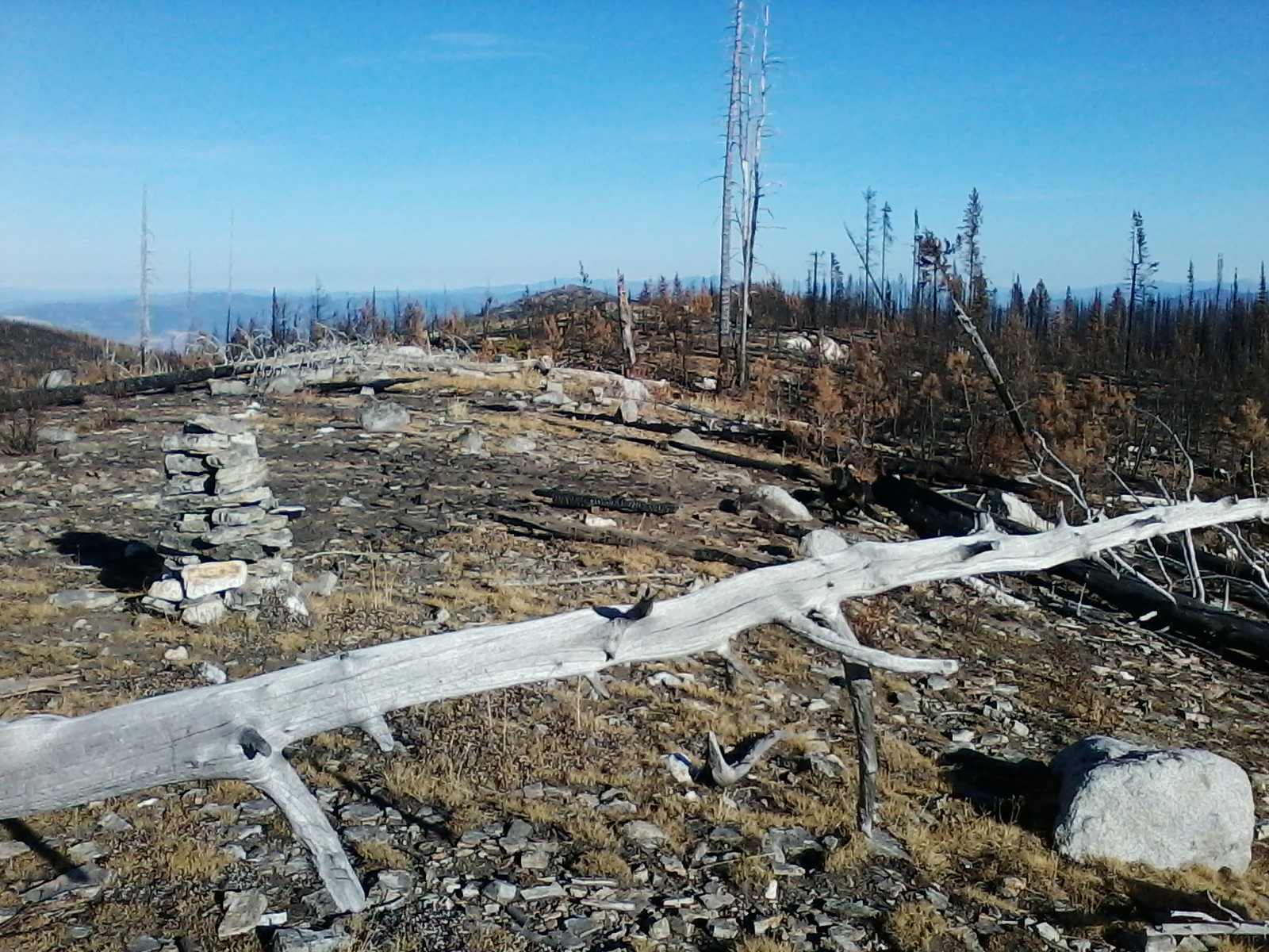 Bottom picture shows summit cairn 2014 with all the deadfall pre fire.