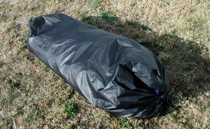 This version is a half bag, just 52″ long. Made of silicone coated 30d nylon it is sturdier than a trash bag, plastic or mylar versions. Weighs under 4 ounces so there is no great weight penalty to bring it along and in fact your sleeping bag will not pick up as much condensation weight over time. And with a half bag, you can still wear an insulated coat on your top half. Just snug the elastic cord around your waist. Your feet will get warm air flow too, unlike socks which isolate the feet.